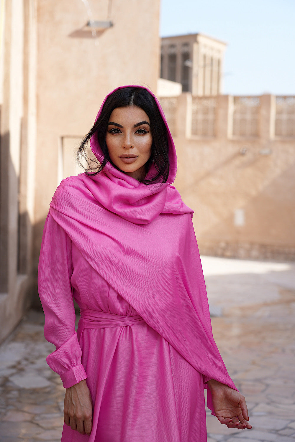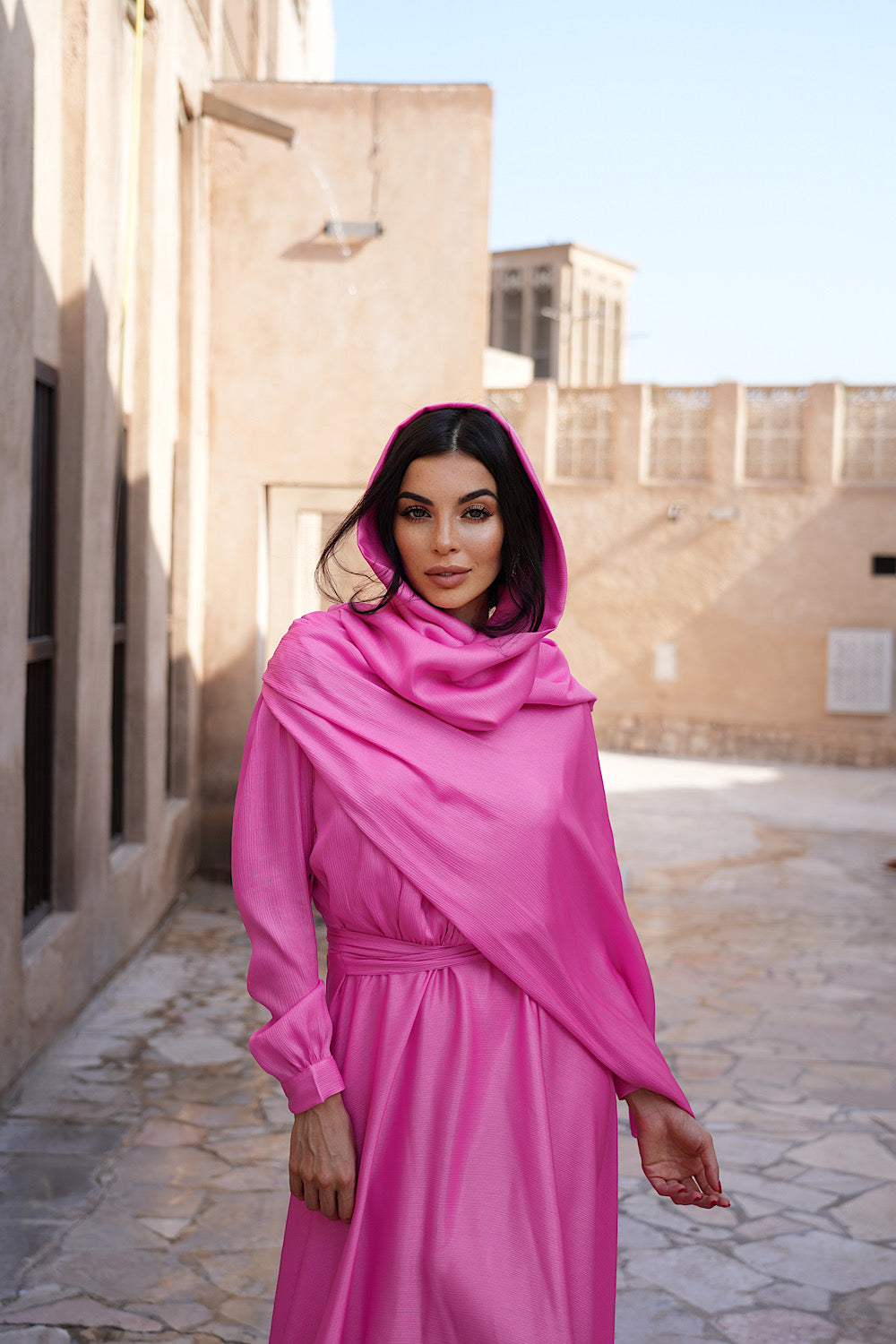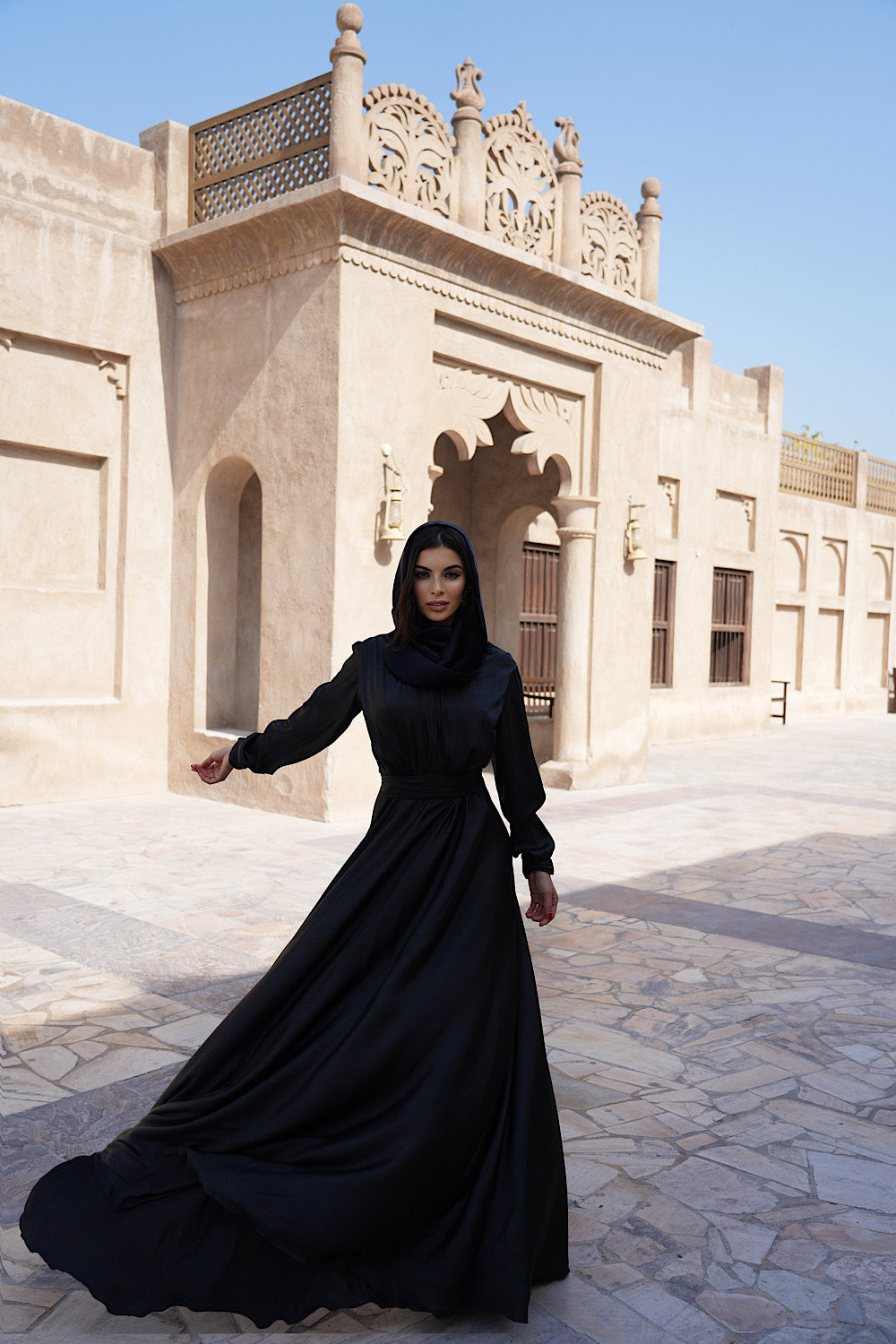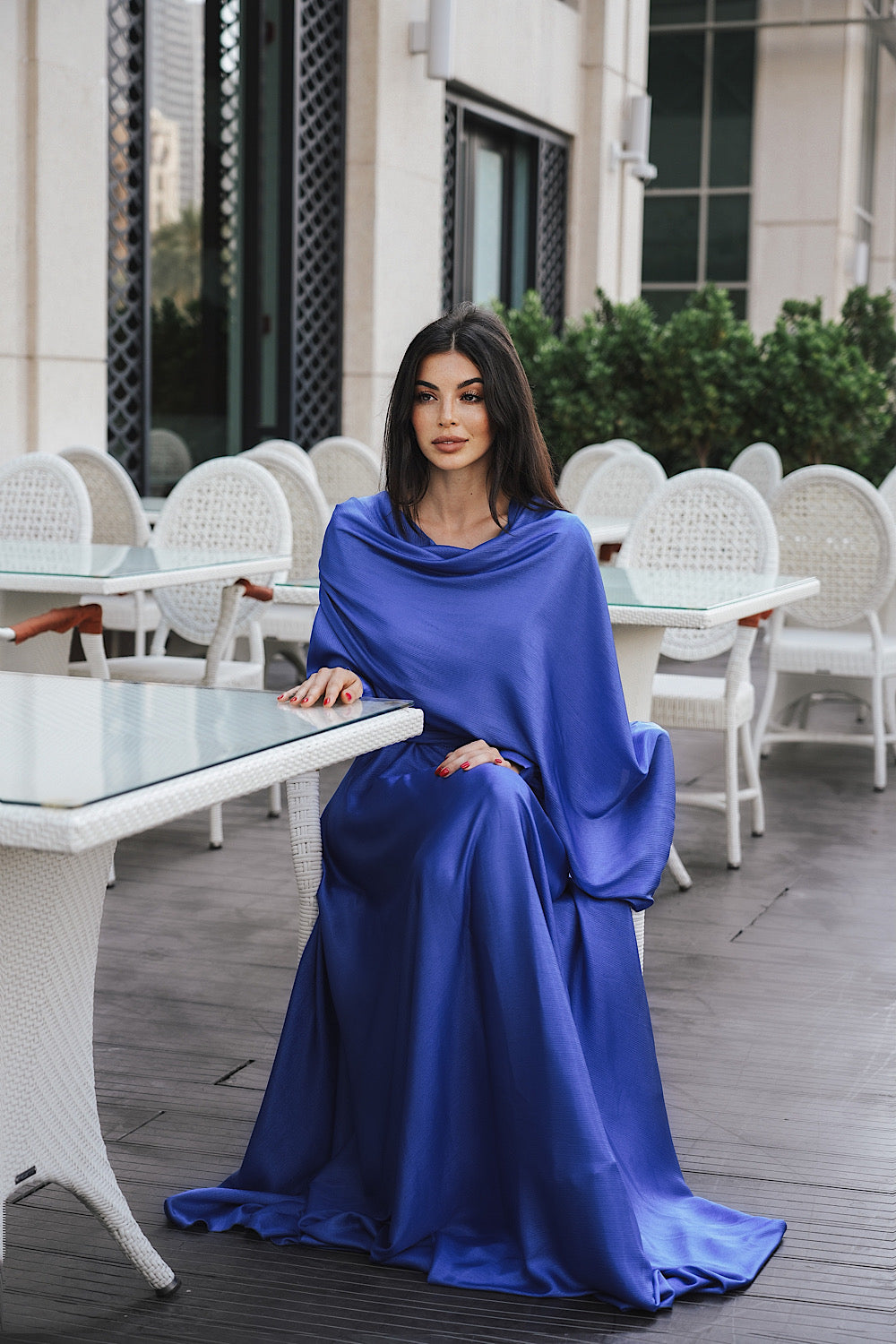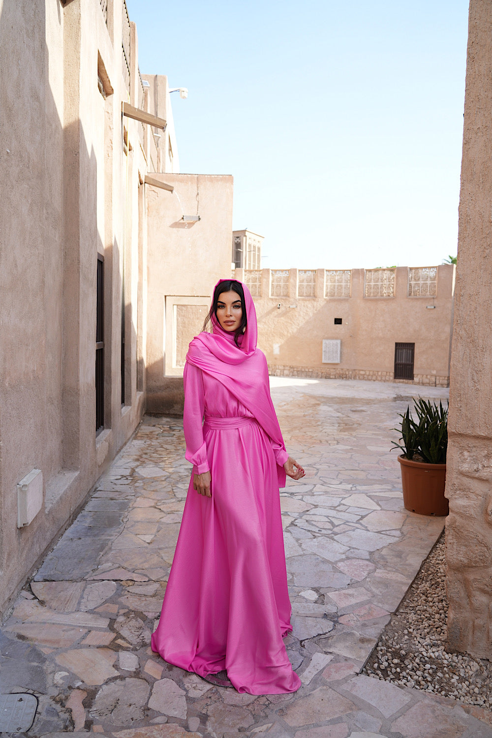 The head cover in matching colour is not part of the dress. It is accessory for the photoshoot. Only the head cover is not part of the dress - not the drapery. If you want to order such head cover - write us on WhatsApp. Price 40AED