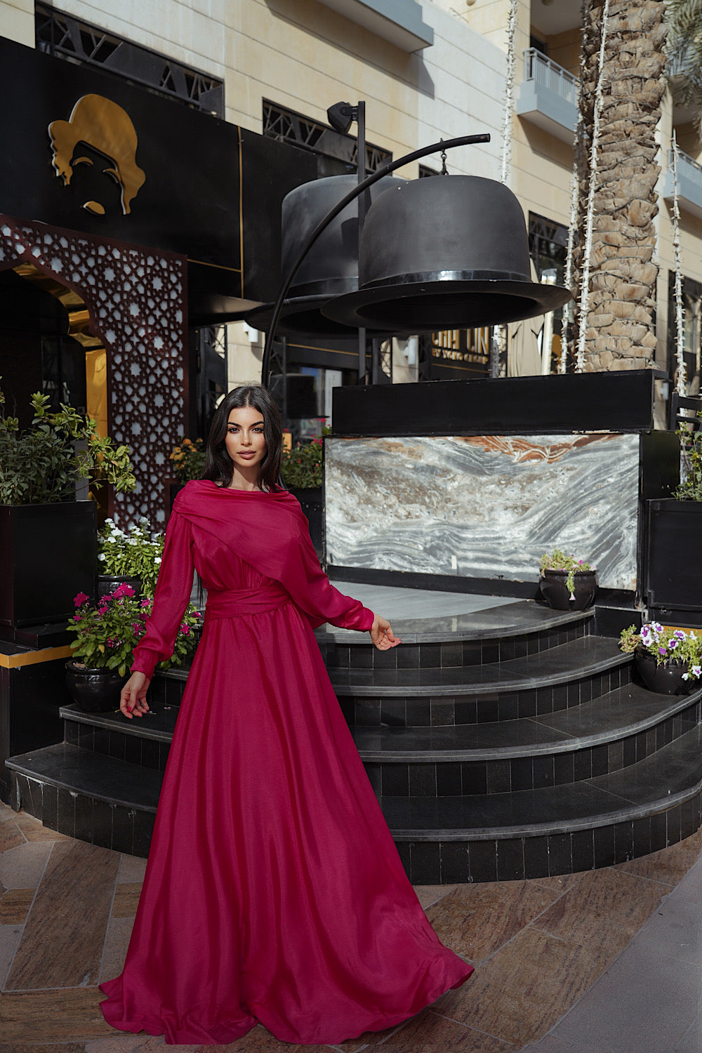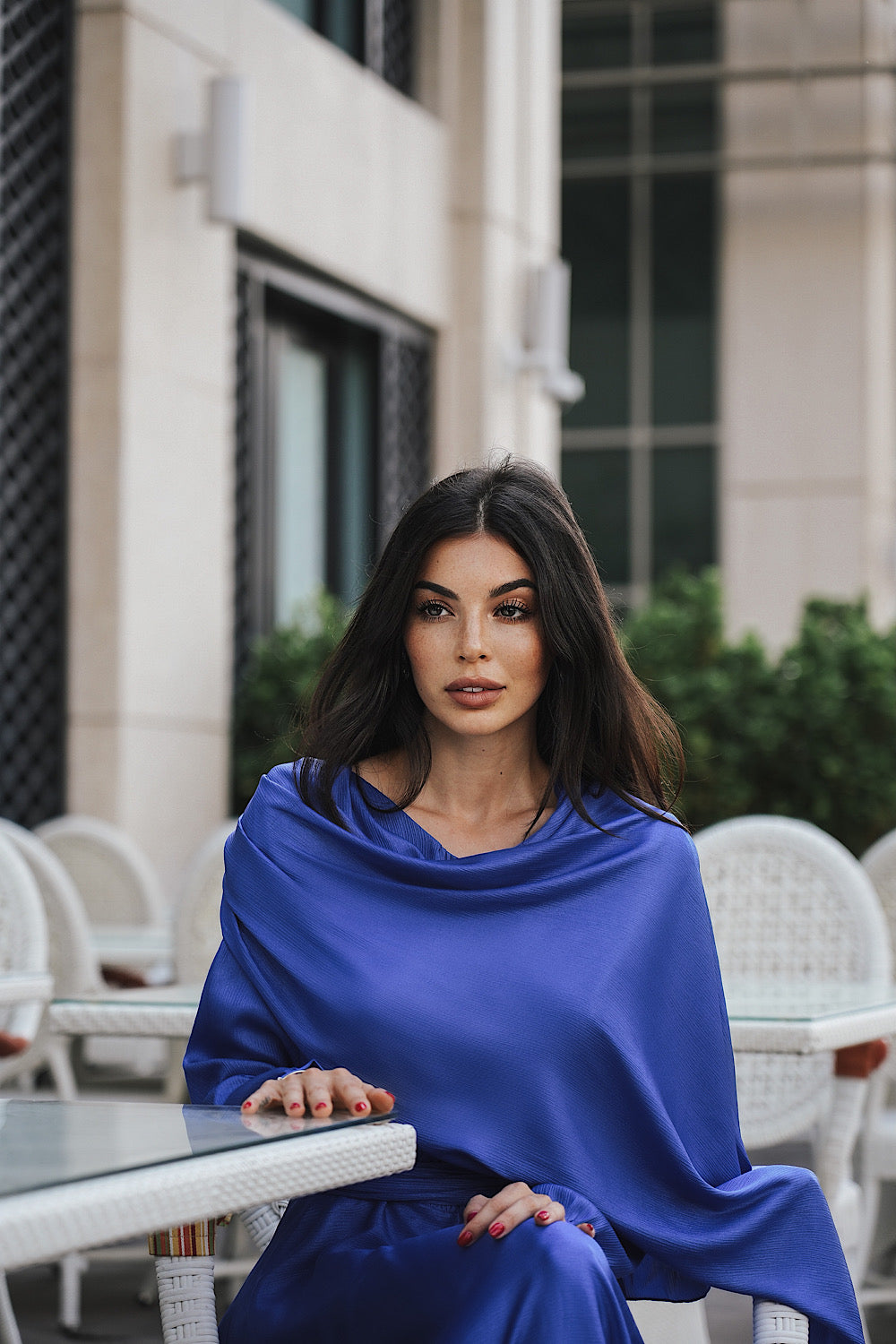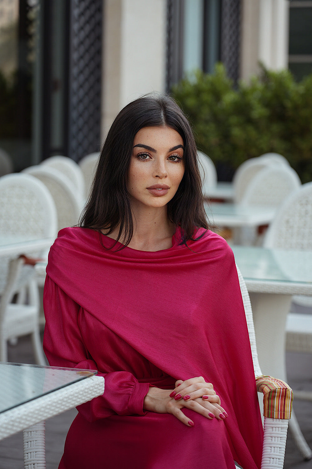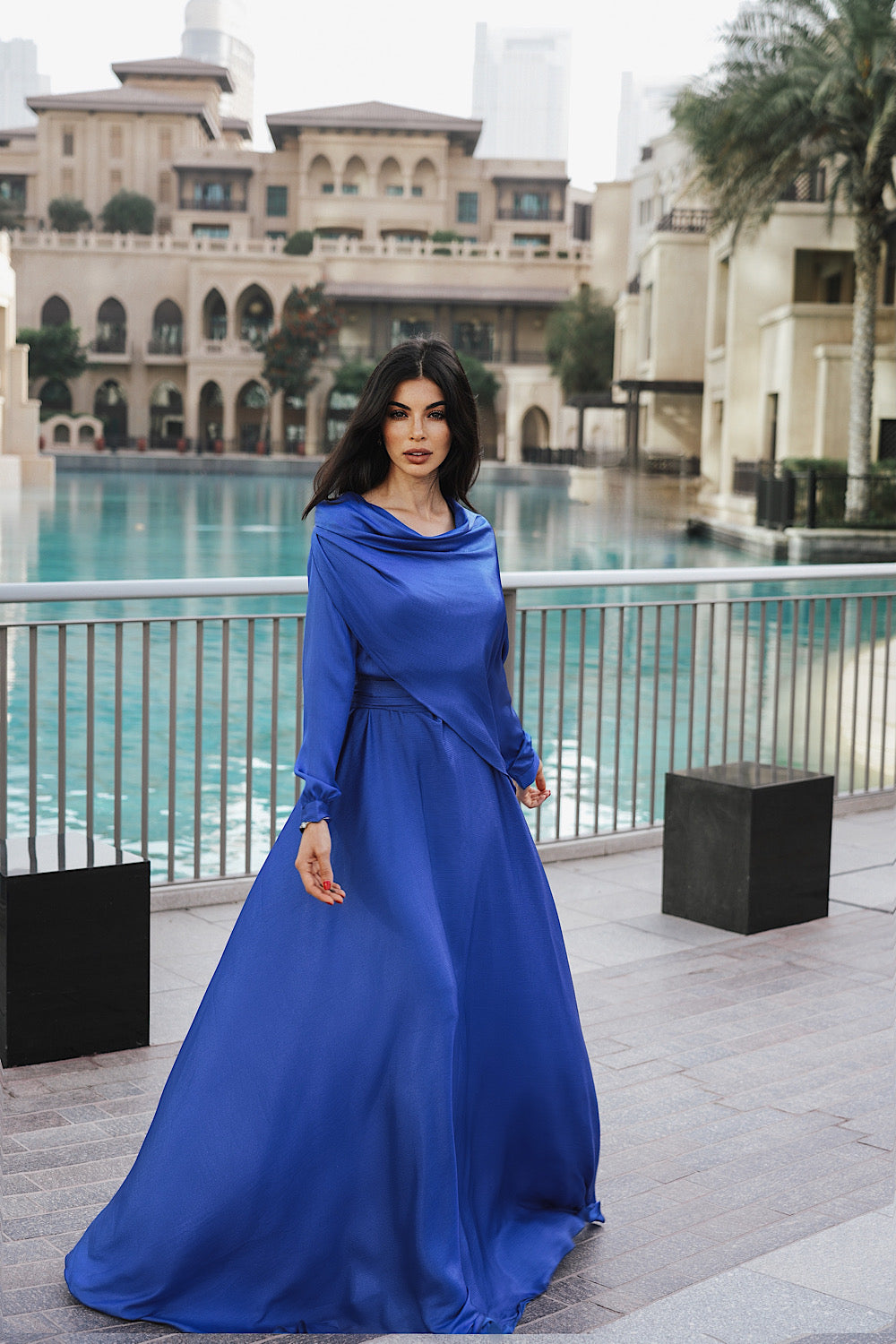 The dress can be worn with and without shalt/drapery covering. Small touch buttons are attached to the lining of the dress. From both sides - so they fix the drapery exactly in the way you see it. They are not visible from outside. With them you can put or take off the sleeve ❤️