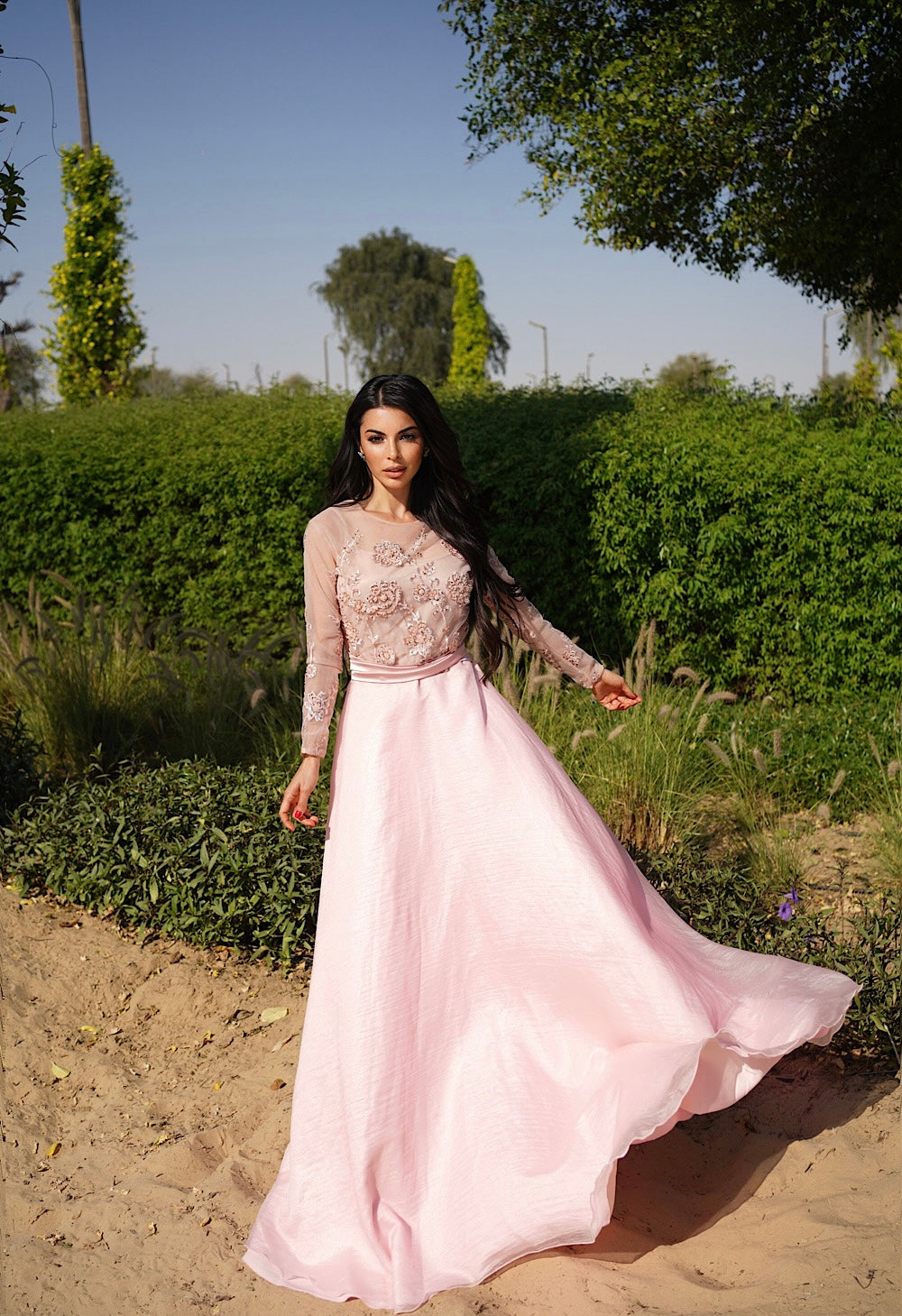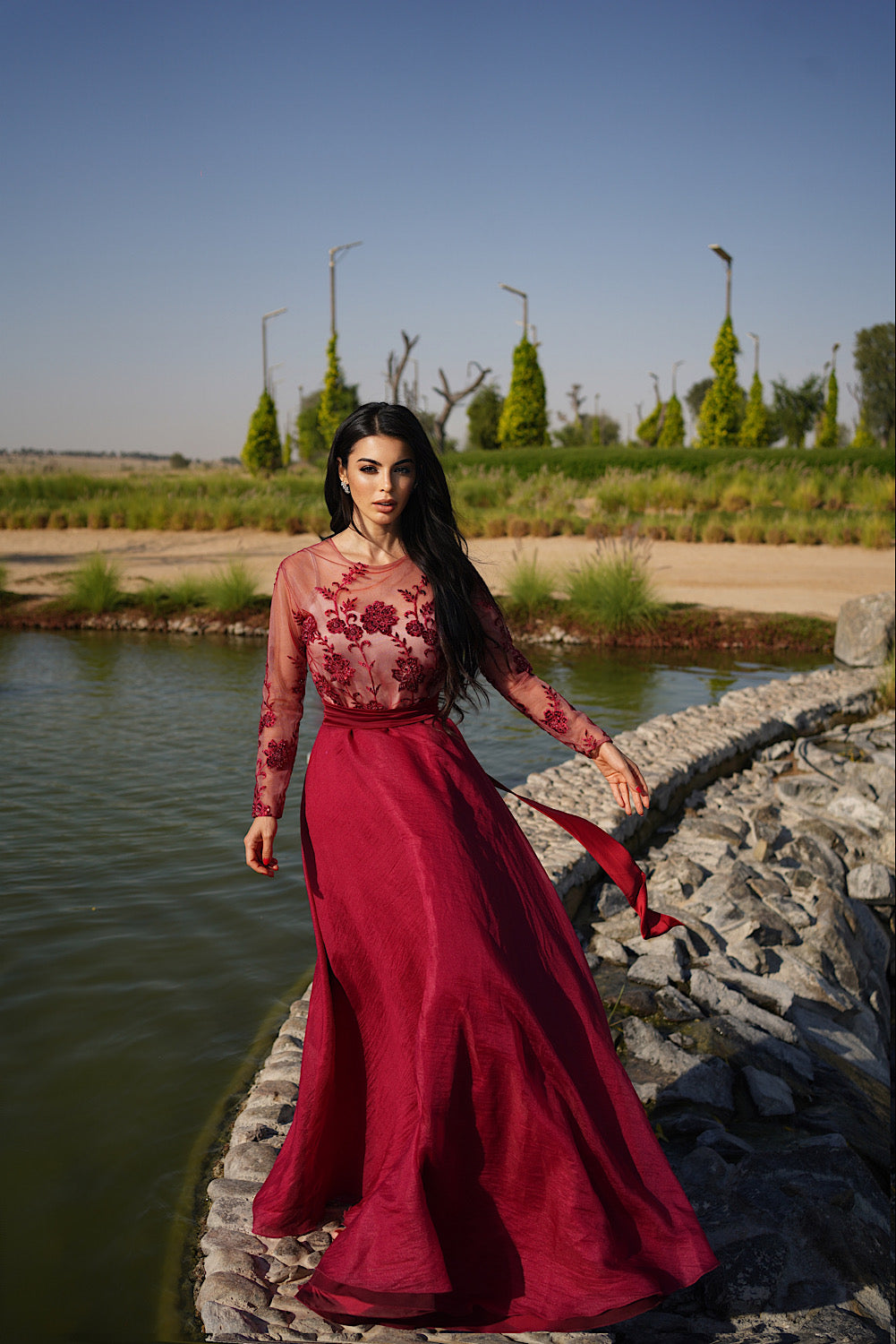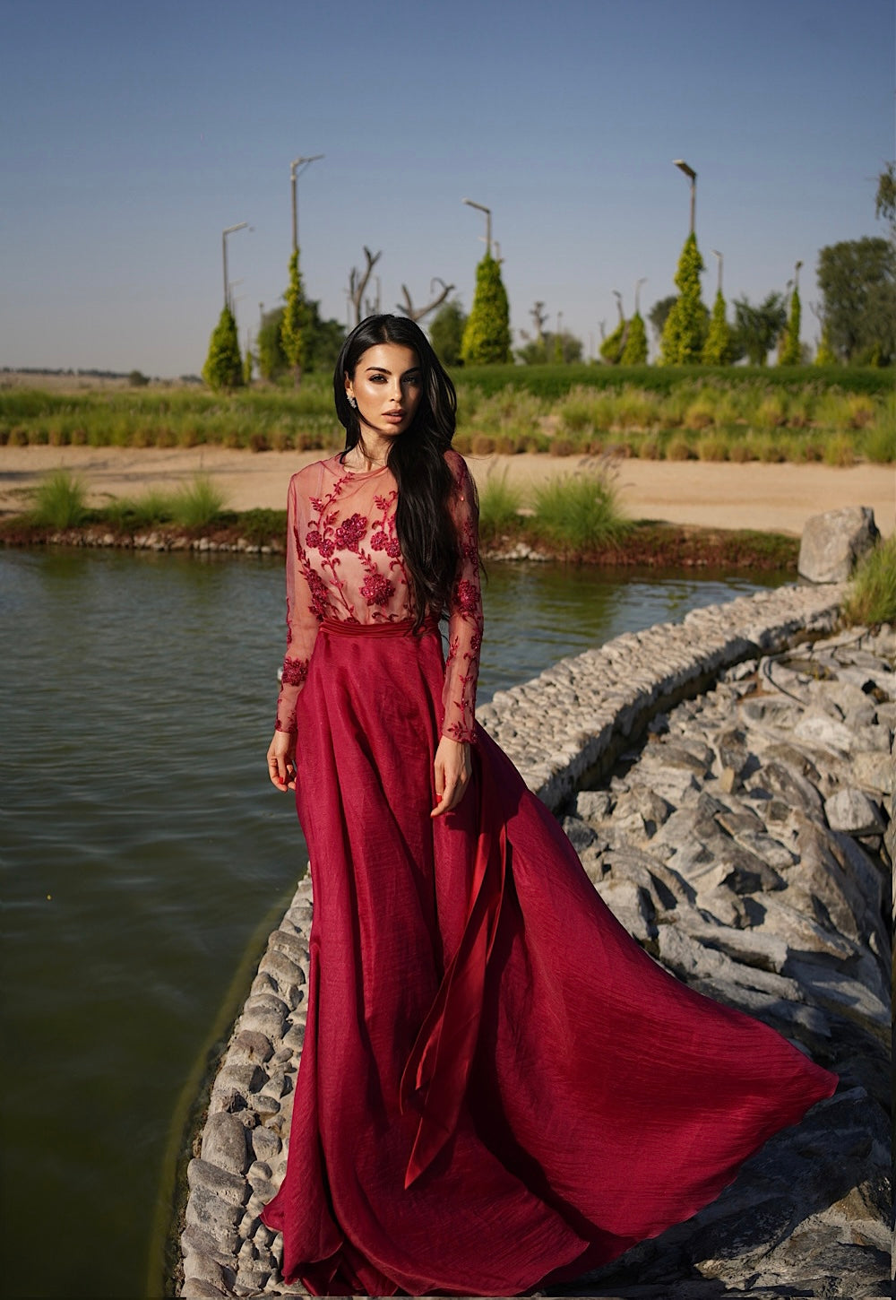 Dear Queen, I am made of beaded lace, tulle raw organza and satin. Very beautiful materials. Some parts of me are hand-made.
