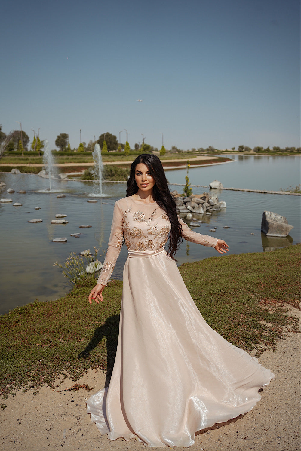 The dress can be worn with and without sleeve. Small touch buttons are attached to the lining of the dress. They are not visible from outside. With them you can put or take off the sleeve ❤️