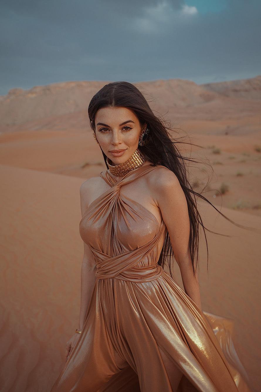 This dress is a must in the creative fashion lovers wardrobe. I personally adore creating and wearing clever clothes, which give you the option to experiment with them. This amazing dress can be worn in more than 5 different ways and it is only a matter of your own imagination how exactly you will wear it. It is like you having several different dresses. You never repeat it, you never get bored. I have all the colours of this dress and always end up with one of them when I want to be glamorous on event or photoshoot. It is letting me to recreate it endlessly which is making it precious, priceless and definitely timeless piece of fashion art for me.